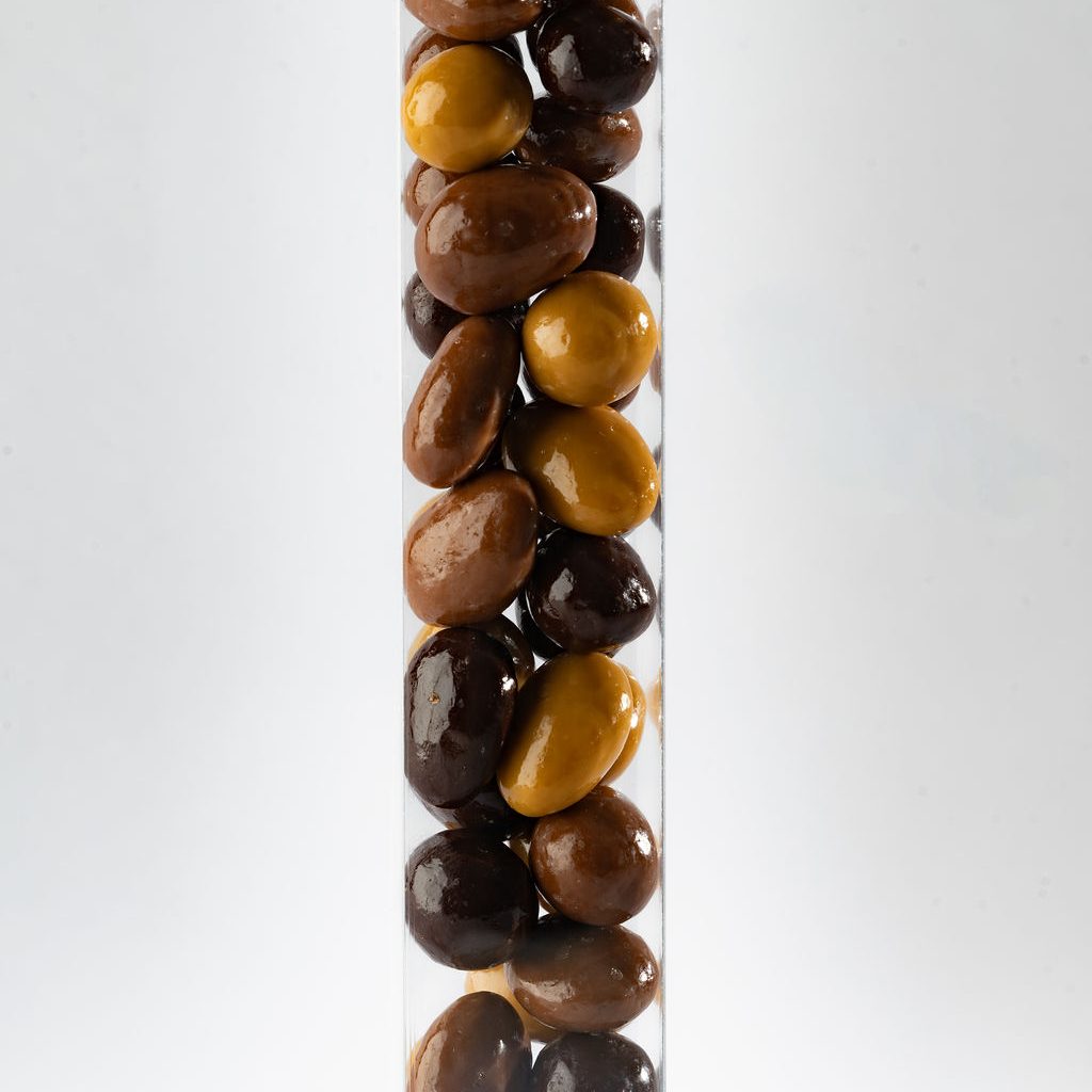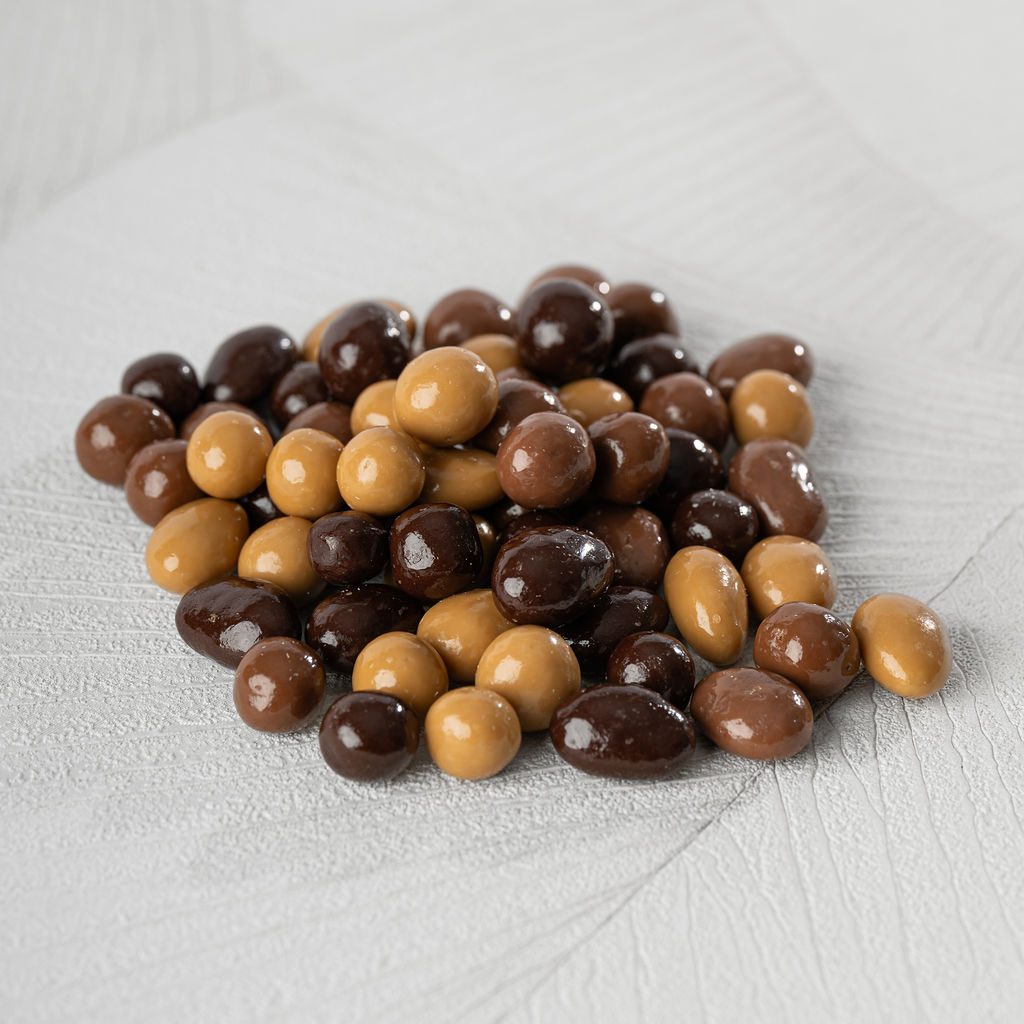 Mix enrobé : Amandes enrobées aux chocolat noir, chocolat au lait, dulcey